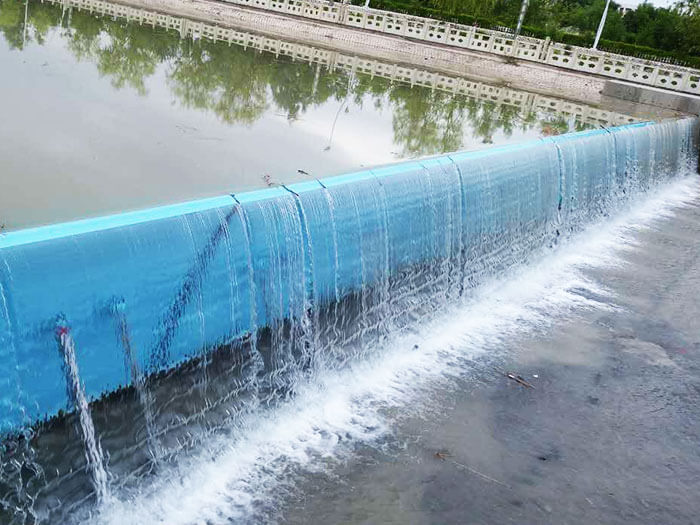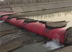橡膠壩使用壽命短(橡膠壩采用的是再生橡膠原料,壩袋易老化,容易被上游漂浮物或尖銳物損壞,從而降低使用壽命);運(yùn)行管理難度大(洪水過后一旦壩面淤積較厚,要求人工清理,否則壩袋不能正常升起蓄水,增加了后期的人工費(fèi)用)。充水式橡膠壩冬季冰凍容易損壞壩袋,而充氣式橡膠壩不能調(diào)節(jié)壩高。